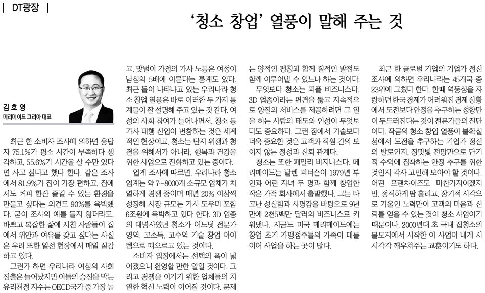 [뉴스] 메리메이드 코리아 김호영 대표 기고 (디지털 타임즈)