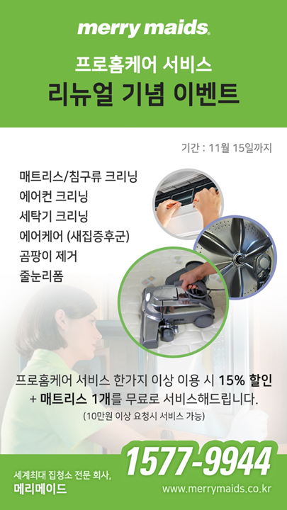 [공지] 프로홈케어 서비스 리뉴얼 기념 15% 할인 이벤트 (정기고객 및 메리메이드 서비스 이용 고객 대상)