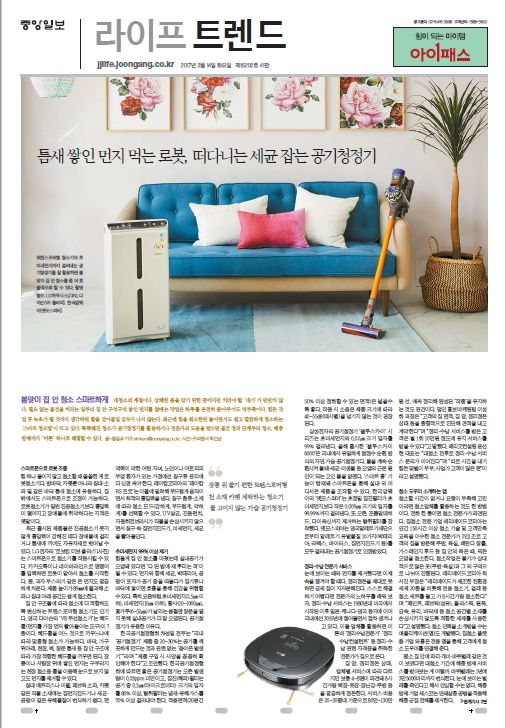 [뉴스] [라이프 트렌드] 틈새 쌓인 먼지 먹는 로봇, 떠다니는 세균 잡는 공기청정기 [출처: 중앙일보]